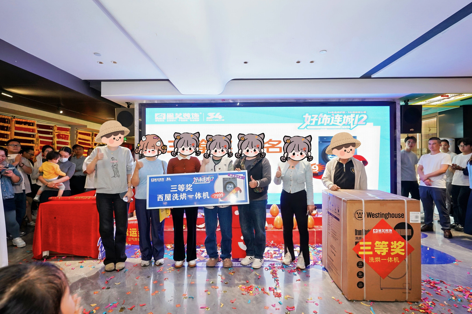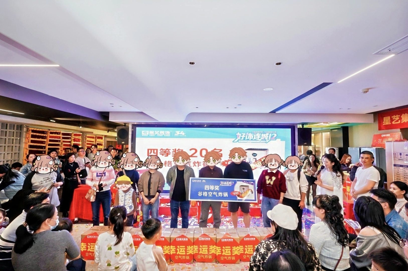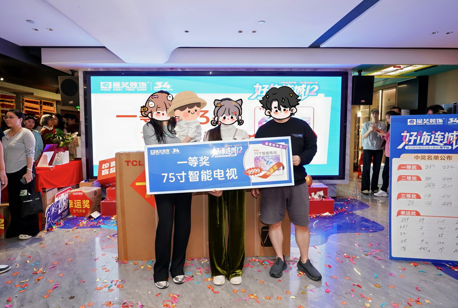 落地狂欢现场,在新老业主的见证下,75寸品牌液晶电视、双开门冰箱、洗烘一体机等品牌家电好礼100%兑付,以此感谢新老客户对星艺装饰的信赖与厚爱,也为“好饰连城12(南宁站)”活动划上圆满句号。