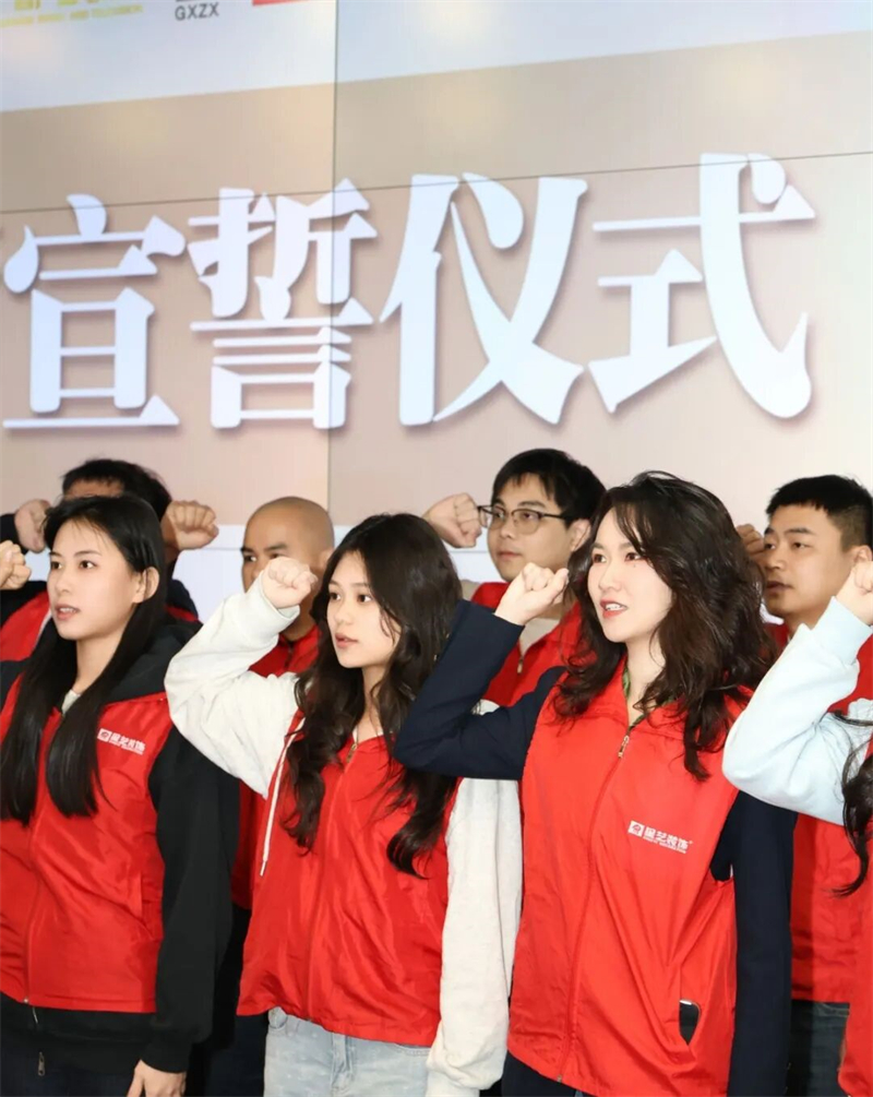 现场,星艺设计师、项目监理、工人以及星艺合作商家代表上台宣誓,从设计到管理,从施工到用材,把控好每一道工序,做到设计贴心,坚守底线,决不以次充好,用责任心守护工程品质,用良心树立行业标杆,为品质交付认真履行。