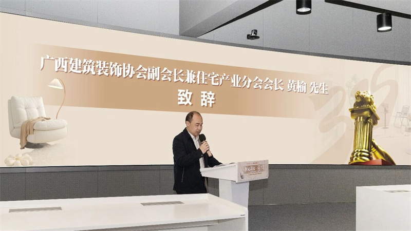 发布会开始,广西建筑装饰协会黄榆副会长上台致辞,黄会长先是肯定了星艺装饰作为协会有担当的会员单位,深耕家装行业35年、扎根广西24,坚守诚信与品质。作为行业龙头企业,始终规范自律、推动广西家居行业健康发展。在3.15消费者权益日,能直面行业痛点,公开宣誓诚信经营,主动邀请媒体监督,以实际行动维护消费者权益,树立行业标杆。同时呼吁装饰同行以诚信、品质、服务为核心,共建安全放心的家装消费环境,助力广西装饰行业持续健康发展。