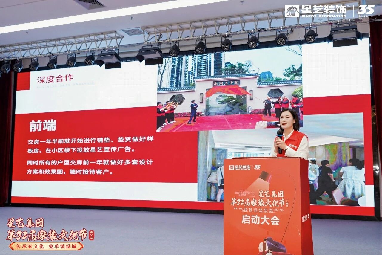 集团副总裁凌峰针对集团第二十二届家装文化节联动机制进行详细讲解。并激励星艺家人们创造佳绩,共同为实现活动目标而努力。