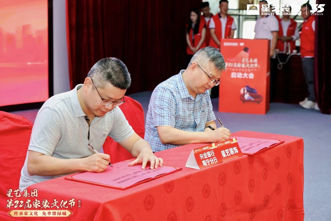 启动会现场,集团总裁孙师恒与兴业银行南宁分行副行长孙晓鹏签订装修预付款银行监管协议。旨在严守装修专款专用原则,全程保障客户资金安全,让广大选择星艺装饰的业主放心装。