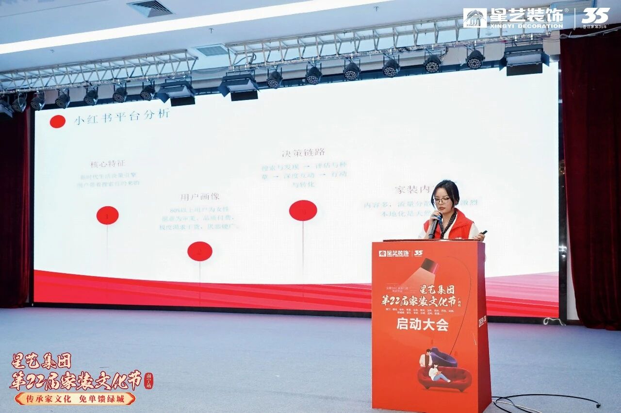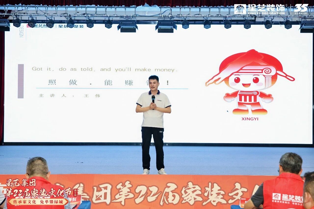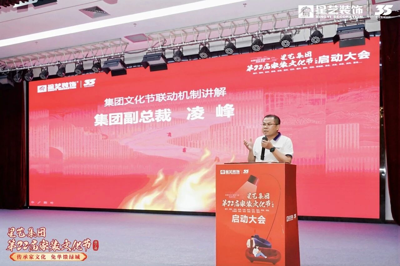 集团副总裁凌峰针对集团第二十二届家装文化节联动机制进行详细讲解。并激励星艺家人们创造佳绩,共同为实现活动目标而努力。